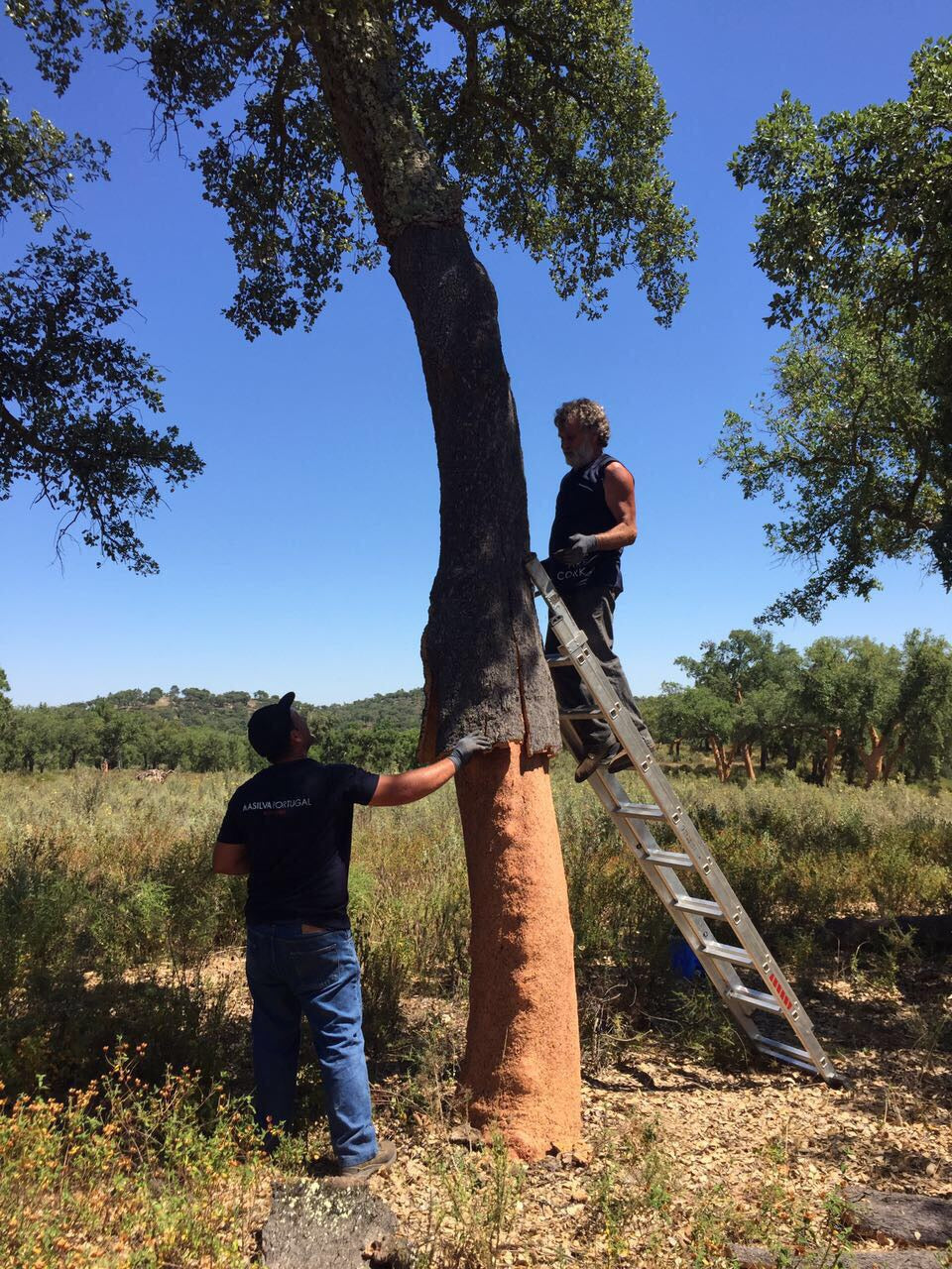 In 2016 we traveled to Portugal to the cork oak farmers and joined the harvesting process. The second our founder stood under the old cork oak trees, she knew her vision and this natural material were meant to align. It was Alchemy. Alongside the cork farmer families, she developed a special technique to produce premium cork yoga mats, and their shared appreciation for the trees turned into deep trust and friendship.