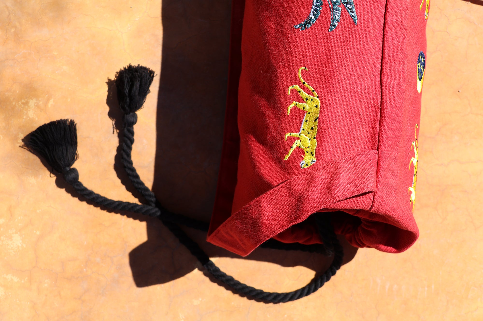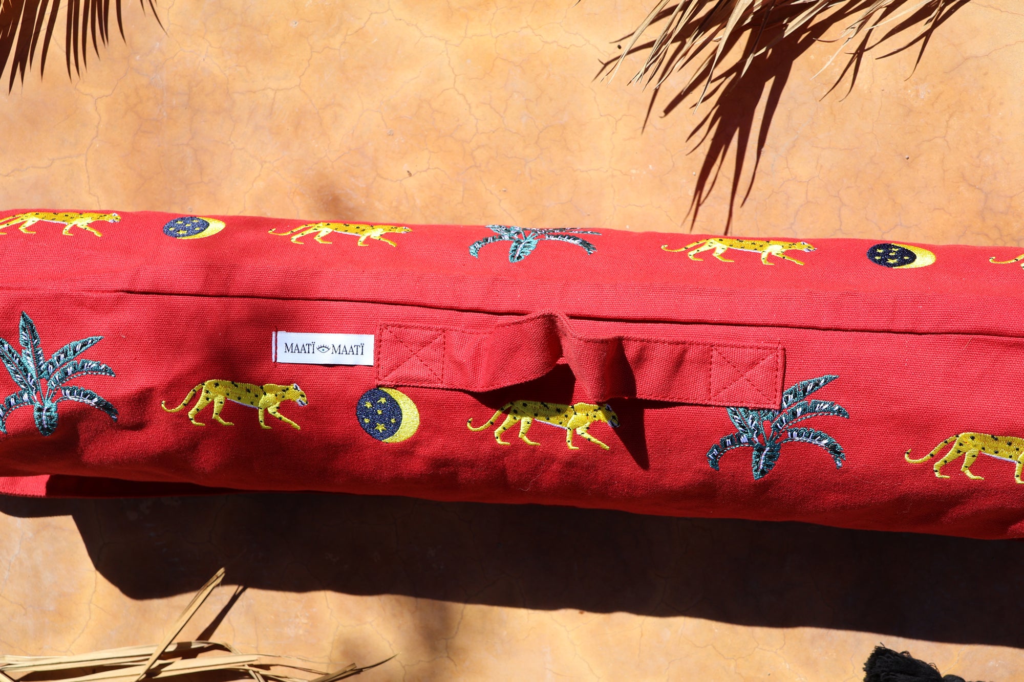 The practical yoga bag not only provides protection for your mat, but is also a stylish it-piece. It is made of canvas, a strong, tightly woven yarn and has a macramé cord. The high-quality design is embroidered with different icons, which symbolize the specific partner charity projects per collection.