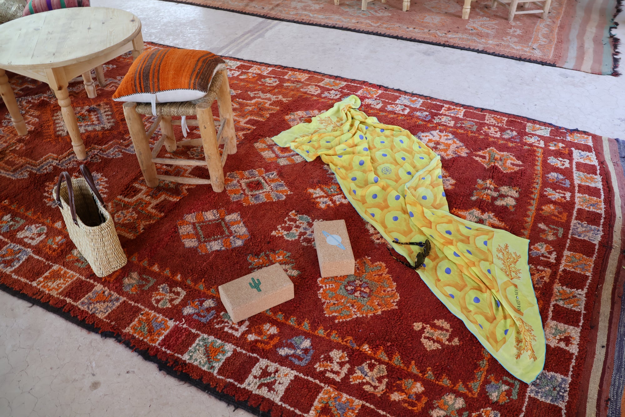With the size of a classic yoga mat, this scarf is the perfect size to cover up for deep meditation after yoga and stay energized in your savasana. THE SHAWL also provides powerful support as a fashion accessory in everyday life. The holistic meditation shawl with channeled designs was energized through meditation by Leonie Lepenos, the founder, using a special technique. Each symbol in the pattern has a deeper meaning, working with psychological color therapy, spiritual signs, sacred geometry and spirit animals - interpreted in a modern way, with style and purist aesthetics. The Shawl is handmade in a small Italian manufactory from cashmere and modal.